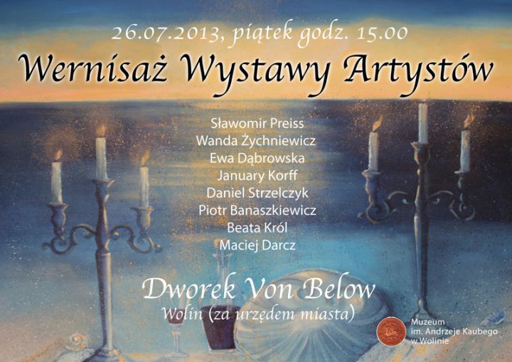 (Wolin) Dzisiaj w malowniczym Dworku von Below o godzinie 15.00 odbędzie się wernisaż Wystawy Artystów. Organizatorzy gościć będą artystów , którzy nie tylko istnieją na rynku sztuki, ale również działają w sferze sztuki, żyją sztuką, wszystko czynią żeby podnieść jej rangę i sprawić, żeby jej odbiór był przeżyciem.