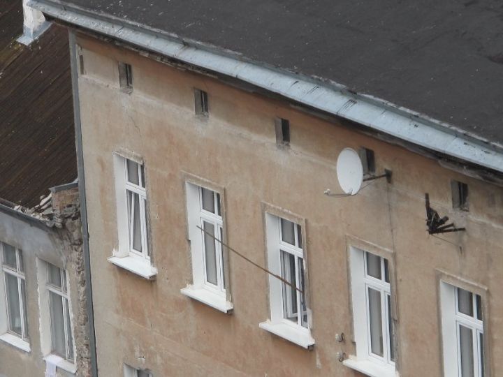 Mieszkanki trzeciego piętra tej kamienicy ze swoich okien długim, metalowym, ciężkim prętem uderzają kilkakrotnie z całej siły w rynnę, naruszając jej mocowanie i konstrukcję… tak odstraszają ptaki! Z każdego okna na tym piętrze, codziennie, co kilka godzin starsza pani realizuje swój plan pozbycia się ptaków! Tak gołębie odlatują od swoich gniazd, a jajka spadają! Czy tak załatwia się takie sprawy? Czy można tak o po prostu kijem niszczyć ptasie gniazda? Być może Towarzystwo Opieki nad Zwierzętami w Polsce Oddział w Świnoujściu, a może Wydział Ochrony Środowiska i Leśnictwa UM zwrócą uwagę na ten problem, a także Spółdzielnia Mieszkaniowa „SŁOWIANIN”, która zastanowi się przed kolejną naprawą rynny, kogo obciążyć kosztami naprawy!