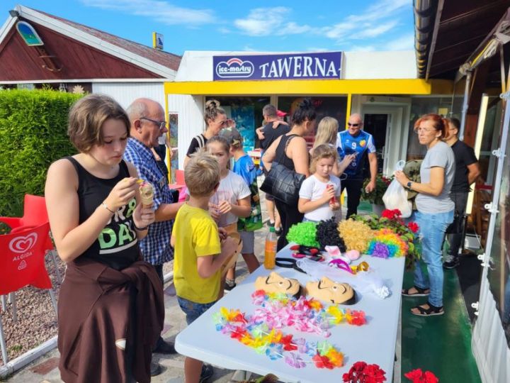 W tym roku impreza odbyła się w Tawernie przy Jeziorze Turkusowym u Państwa Isenko. Jak na festyn na świeżym powietrzu przystało, nie mogło zabraknąć waty cukrowej, gier, zabaw ruchowych i tanecznych, które zapewnili animatorzy oraz Emilia i Igor na fotobudce 360. Zabawę sportową z dartem piłkarskim prowadzili trenerzy z Klubu Sportowego „Fala” Międzyzdroje. Tuż obok rozstawiony był dmuchaniec ze zjeżdżalnią, który cieszył szczególnie najmłodszych uczestników festynu, sprawiając im dużą frajdę. Muzykę na żywo serwował Piotr Madejek, który w roli konferansjera spisał się znakomicie. W bufecie serwowano już tradycyjnie: pieczone ziemniaki z sosem tzatziki, sytą kartoflankę, sałatkę ziemniaczaną, pieczone kiełbaski, grillowaną karkówkę, kaszankę z cebulką. Jak co roku ogromną popularnością cieszyła się przygotowana przez Międzyzdrojskie Stowarzyszenie „Rodzina” zabawa „wybieranki-niespodzianki”. Nową atrakcją była możliwość zrobienia pamiątkowego zdjęcia z panem Misiem oraz panem Ziemniaczkiem – maskotką festynu. Serdecznie dziękujemy paniom z KGW „Wiklina” w Wapnicy oraz rodzicom dzieci ze Szkoły Podstawowej nr 2 w Wapnicy za przygotowanie wypieków do słodkiego bufetu, który kusił obfitością ciast. Podczas festynu za wszelkie atrakcje i kulinarne pyszności można było wrzucić dobrowolny datek do puszki. W związku z tym została zarejestrowana zbiórka publiczna „Klubik rodzinny – od juniora do seniora – dofinansowanie projektu”. Zebraliśmy 4223,46 zł, które zostaną przeznaczone na zajęcia, spotkania, warsztaty dla mieszkańców gminy Międzyzdroje, których organizatorem będzie Międzyzdrojskie Stowarzyszenia „Rodzina”.
