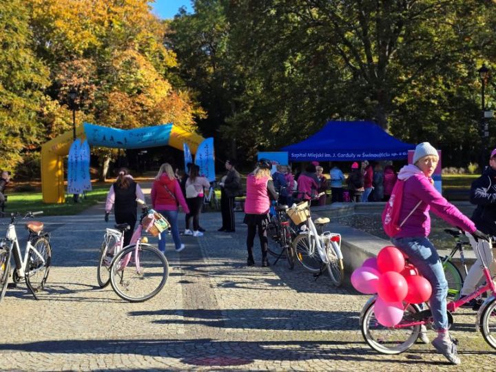 Akcję sygnowaną jako „Różowy październik w ruchu” przygotował Szpital Miejski im. Jana Gardły w Świnoujściu wraz z Biegaczami Świnoujście. Kilkudziesięciu rowerzystów obojga płci z różowymi akcentami w ubiorze jeździło parkowymi alejkami w Świnoujściu upowszechniając w różowym październiku ideę badań. Przy fontannie na centralnym parkowym placu ustawiono zaś namiot w którym można było uzyskać niezbędne informacje o tej chorobie, jej zapobieganiu i konieczności choćby samobadania.