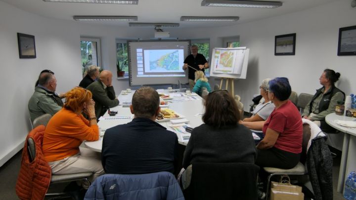 W sobotę, 18 października 2025 r., odbył się drugi już spacer geologiczny. Rozpoczął się wykładem w Dyrekcji Wolińskiego Parku Narodowego w Grodnie, który poprowadził Andrzej Piotrowski doktor nauk o Ziemi w zakresie geologii. Doktor Piotrowski wraz z Małgorzatą Schiewe , jako pracownicy Oddziału Pomorskiego PIG-PIB w Szczecinie są autorami wydanego w tym roku obszernego Przewodnika geologicznego „Woliński Park Narodowy i tereny przyległe”. Wykład był poświęcony w głównej mierze geologii obszaru WPN i ukształtowaniu przez wieki tego terenu , ale nie był pozbawiony także powiązaniu geologii z historią i legendami . Te ostatnie dotyczyły słynnej Winety o której ze swadą opowiadał dr A. Piotrowski, wskazując przeróżne warianty jej potencjalnego usytuowania. Prelegent opowiadał m.in. o tym z czego zbudowane są stare świnoujskie falochrony zachodni i wschodni (obecnie centralny), Zbudowano je zasadniczo z kamieni wydobytych z rafy usytuowanej nieopodal Świnoujścia - 1.5 km w głąb Bałtyku , gdzie według różnych przekazów mogła być legendarna Wineta.