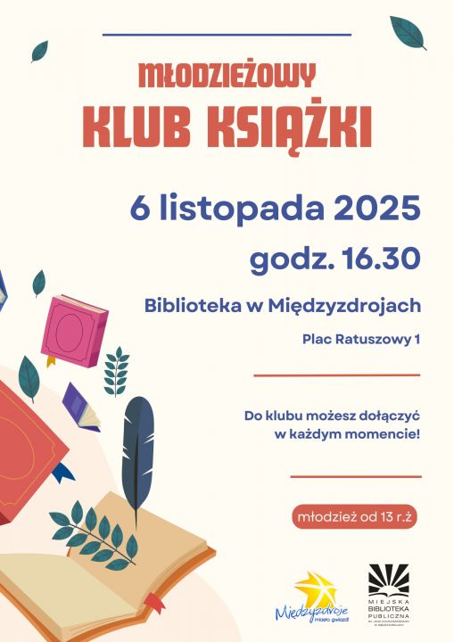 (Międzyzdroje) Lubisz czytać? Twoje ulubione książki na półce są pełne kolorowych adnotacji? A może po prostu bardzo chcesz się z kimś podzielić swoimi przemyśleniami i odczuciami po lekturze przy herbatce i ciastku? W takim razie mamy dla Ciebie dobrą wiadomość! Zapraszamy na kolejne spotkanie Młodzieżowego Klubu Książki, które odbędzie się 6 listopada 2025 r. o godz. 16.30 w bibliotece. Czekamy na Was!