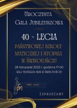 Państwowa Szkoła Muzyczna I Stopnia w Świnoujściu obchodzi właśnie swój godny jubileusz. Obchody 40-lecia tej artystycznej szkoły odbędą się w piątek 28 listopad o godzinie 17.00 w sali teatralnej Miejskiego Domu Kultury przy ul. Matejki 11.