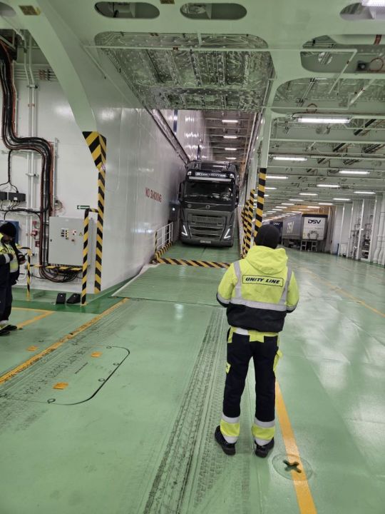 – Do pokonania mamy około 100 mil morskich, czyli w przybliżeniu 200 kilometrów. Rejs potrwa około sześciu godzin przy prędkości eksploatacyjnej, a maksymalna prędkość jednostki wynosi 19 węzłów, czyli blisko 35 km/h – mówił przed startem Adam Kowalski, kapitan promu Jantar Unity. – Dzisiejsze warunki pogodowe są typowe dla zimowego Bałtyku, z niską temperaturą i umiarkowanym stanem morza, w pełni bezpieczne dla żeglugi. Jantar Unity bardzo dobrze zachowuje się na wodzie, a systemy stabilizacji skutecznie ograniczają przechyły. Dzięki temu załoga ma doskonałe warunki do prowadzenia nawigacji, a pasażerowie mogą liczyć na komfortową, spokojną i bezpieczną podróż.