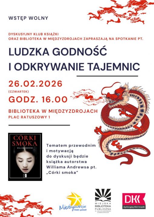 Miejska Biblioteka Publiczna oraz Dyskusyjny Klub Książki w Międzyzdrojach zapraszają 26 lutego 2026 r. o godz. 16.00 (czwartek) na spotkanie pt. „Ludzka godność i odkrywanie tajemnic”. Tematem przewodnim i motywacją do dyskusji będzie książka autorstwa Williama Andrewsa pt. „Córki smoka”.
