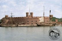 Fotografia jest wyjątkowa pod każdym względem. Pokazuje cały kompleks od strony wody, w pierwotnej formie, jeszcze przed gruntowną przebudową, która nastąpiła kilka lat później. To bezcenny dokument architektury militarnej i dawnego krajobrazu portowego miasta.