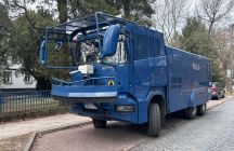 Taki specjalistyczny policyjny pojazd jaki widać na zdjęciu przyjechał okazjonalnie do Świnoujścia w sobotę 28 marca . Służący do ostudzania rozpalonych głów samochód przybył specjalnie na mecz piłkarski pomiędzy MKS FLOTA Świnoujście a ZKS ELANA Toruń.