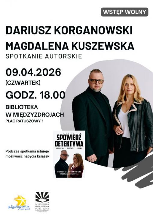 (Międzyzdroje) Miejska Biblioteka Publiczna w Międzyzdrojach zaprasza na spotkanie autorskie z Dariuszem Korganowskim, licencjonowanym detektywem i wykładowcą akademickim oraz Magdaleną Kuszewską, dziennikarką, pisarką i podcasterką - autorami reportażu „Spowiedź detektywa. Oszustwa. Szantaże. Zdrady”. Wydarzenie odbędzie się 9 kwietnia 2026 r. (czwartek) o godz. 18.00 w bibliotece (Plac Ratuszowy 1). Spotkanie będzie połączone z promocją książki. Wstęp wolny. Dariusz Korganowski jest założycielem Kancelarii Detektywistyczno-Prawnej „Top