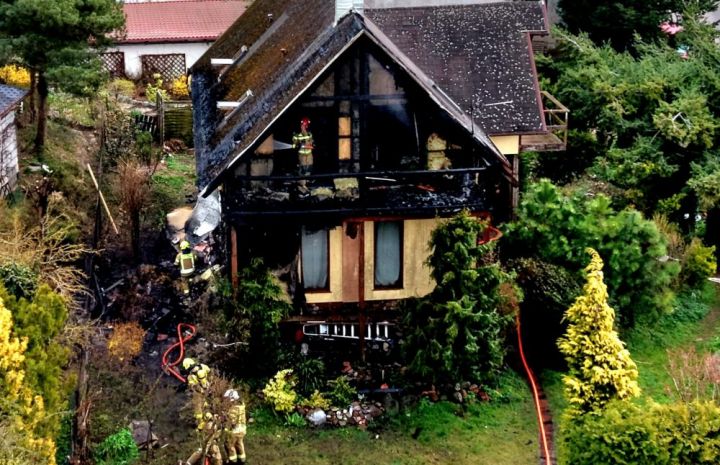 Ogień objął poddasze oraz część środkową budynku, powodując poważne zniszczenia konstrukcji i elewacji domu. Strażacy prowadzili działania gaśnicze zarówno z zewnątrz, jak i wewnątrz obiektu, aby nie dopuścić do dalszego rozprzestrzenienia się pożaru.