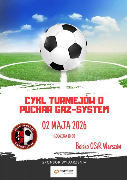 Już w najbliższą sobotę 2 maja zapraszamy wszystkich fanów futbolu na kolejną sportową rywalizację w ramach Cyklu Turniejów o Puchar GAZ-SYSTEM! Wstęp wolny.