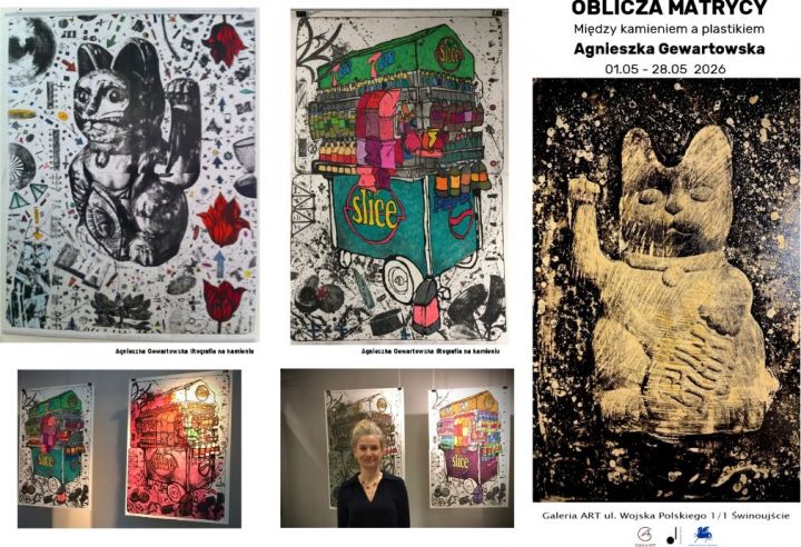 Agnieszka Gewartowska zaprezentuje w Galerii ART Miejskiego Domu Kultury (ul. Wojska Polskiego 1/1) w piątek 1 maja o godzinie 18.00 swoją wystawę litografii pt. „Oblicza matrycy : między kamieniem a plastikiem” .