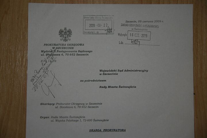 Zanim urzędowa korespondencja z Prokuratury Okręgowej doszła do właściwego adresata, którym była Rada Miasta Świnoujścia trafiła do rąk prezydenta Janusza Żmurkiewicza, jego zastępcy Andrzeja Szczodrego i Zakładu Gospodarki Mieszkaniowej. Do adresata czyli Przewodniczącego Rady Miasta Świnoujścia przesyłka doszła po 10 dniach od daty kiedy odebrano ją w świnoujskim urzędzie i po tym jak przeczytało ją kilka innych osób. Kto manipuluje w urzędzie korespondencją? Czy Biuro Rady Miasta Świnoujścia nie panuje nad pismami jakie są tam kierowane?