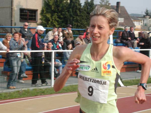 (MIĘDZYZDROJE) Ubiegłoroczna mistrzyni Polski Grażyna Syrek (KS Piętka Katowice) obroniła tytuł podczas sobotnich Mistrzostw Polski seniorów w biegu na 10 000 m, które odbyły się na stadionie w Międzyzdrojach. Była bezkonkurencyjna. Wynikiem 33:16,52 pobiła swój życiowy rekord. W rywalizacji meżczyzn na tym dystansie najlepszy był Michał Kaczmarek (GKS Grunwald Poznań). Ustanowił swój życiowy rekord wynikiem 23:48,25. Oba wyniki - choć rekordowe dla zawodników - były zbyt niskie by uzyskać minimum na sierpniowe mistrzostwa Europy w Goeteborgu. Mariusz Giżyński z KB Sporting Międzyzdroje zakończył biegna miejscu 7 pokonując 10 km w czasie 30:18,89. Sylwester Swędrowski z MKL Maraton Świnoujście był piętnasty (33:05,16). Na zdjeciu G. Syrek