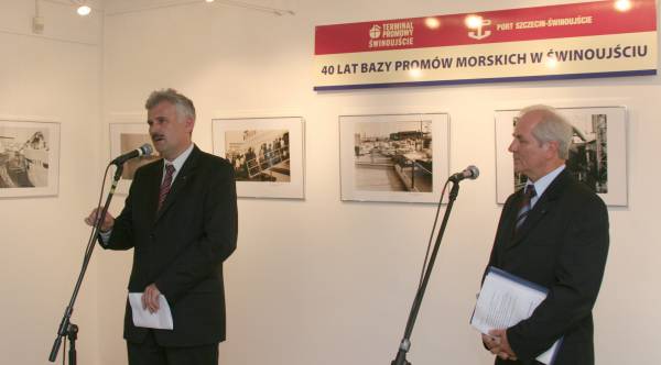 W galerii ART. Miejskiego Domu Kultury z okazji 40. Rocznicy powstania Bazy Promów Morskich w Świnoujściu, w czwartek 22 czerwca została otwarta jubileuszowa wystawa fotograficzna. Gospodarzami uroczystości był Wojciech Szlachcikowski prezes spółki Terminal Promowy Świnoujście (na foto z prawej) i Dariusz Rutkowski prezes Zarządu Morskich Portów Szczecin i Świnoujście (na foto z lewej). Wystawa prezentuje rozwój bazy promowej, a szczególne emocje wśród zwiedzających wzbudziły zdjęcia z początków istnienia firmy, które w sposób wymowny udowodniły ogrom zmian jakie nastąpiły od bazy do dzisiejszego terminalu.