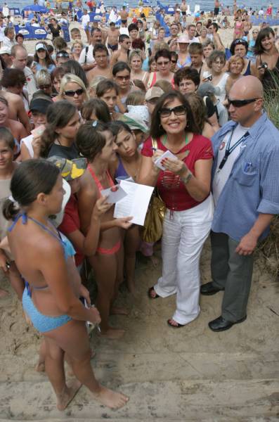 Zaczęło się dość niepokojąco: pustkami w hotelu i przed. Wczesny wieczór, a w drzwiach żadnego ochroniarza. No bo po co, jeśli przed drzwiami zero fanów? A w środku - zero Gwiazd? Nic się nie dzieje? (...) - Kiedy półtora miesiąca temu informacje prasowe doniosły nam, że po 10 latach Wakacyjny Festiwal Gwiazd opuszcza Miedzyzdroje zdecydowaliśmy, że tak łatwo się nie poddamy. Podjęliśmy się wyzwania, choć wpuszczono nas na głęboką wodę, a i czasu było niewiele - mówi Jan Magda, przewodniczący Rady Miejskiej. - To co się dzieję jest dowodem na to, że potrafimy zrobić to sami. Mam nadzieję, że z czasem Zachodniopomorskie Lato z Gwiazdami rozwinie się i wypracuje własną tradycję. Będziemy mieli więcej czasu na przygotowanie kolejnej edycji. Na zdjeciu Agnieszka Fritkau - Perepeczko z tłumem fanów