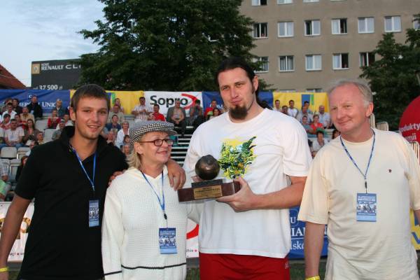 (Międzyzdroje) Około dwóch tysięcy osób uczestniczyło w porannym Biegu Śniadaniowym (na zdjęciu obok i na okładce) rozgrywanym w Międzyzdrojach, w czwartek 17 sierpnia.. I nie chodziło tu bynajmniej o ściganie się i pobicie rekordu biegu, ale o wspólne przemierzenie trasy dwóch kilometrów, które kończyło śniadanie na trawniku przy hotelu Amber Baltic. Wśród uczestników biegu wystąpiły także sportowe sławy z różnych dyscyplin, takie jak choćby skoczek wzwyż Jacek Wszoła, sprinterzy Marian Woronin, Marcin Urbaś i Łukasz Chyła, trójskoczek Zdzisław Hoffman, bokserzy Maciej Zegan i Krzysztof Kosedowski, młociarz Szymon Ziółkowski oraz nasz słynny biegacz Bogusław Mamiński. Bieg śniadaniowy zaliczył również m.in. aktor Zbigniew Buczkowski i burmistrz Międzyzdrojów Leszek Dorosz oraz wiele rodzin z dziećmi. Trasa tego rekreacyjnego sportowego święta tradycyjnie, prowadziła przez plażę i międzyzdrojską promenadę. Bieg towarzyszył VIII Międzynarodowemu Mityngowi Lekkoatletycznemu Międzyzdroje 2006 poświeconemu pamięci olimpijczyków, kulomiota Władysława Komara i tyczkarza Tadeusza Ślusarskiego. Mityng odbywał się pod patronatem Ministerstwa Sportu RP. , a tradycyjnie rozgrywano go w dwóch dyscyplinach pchnięciu kulą i skoku o tyczce. Tegoroczny mityng odbył się tego samego dnia wieczorem na międzyzdrojskiej Alei Gwiazd tuż obok hotelu Amber Baltic. Gośćmi honorowymi mityngu były m.in. rodziny obu tragicznie zmarłych sportowców - Maria, żona Władysława Komara i jego syn Mikołaj oraz matka Tadeusza Ślusarskiego - Cecylia i jego córka Nina Ślusarska.