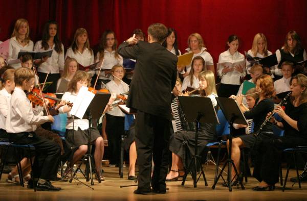 W miniony piątek (29.09)odbył się koncert orkiestry i chóru w wykonaniu uczniów Państwowej Szkoły Muzycznej. Tryptyk szkolny - taki był tytuł utworu, a dyrygował kompozytor i nauczyciel PSM Krzysztof Naklicki. Trzy miniatury powstały z okazji dwudziestolecia szkoły, a kompozytor zadedykował je nauczycielom i uczniom. Foto. A. Kubasik