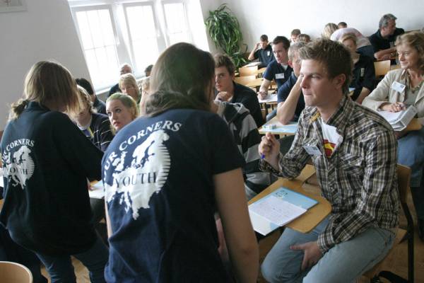 W dniach 29-30 września trwały w Świnoujściu obrady III Parlamentu Młodzieży Czterech Zakątków, w których uczestniczyło około 100 uczniów ze Świnoujścia, Rugii, Płd.-Wschodniej Skanii i Bornholmu. Prace Parlamentu odbywały się w międzynarodowych grupach dyskusyjnych. W tym roku młodzi parlamentarzyści dyskutowali o problemach związanych z edukacją, a w tym o partnerstwie szkół, różnicach i podobieństwach w programach nauczania, o promocji regionów, problemach społeczych takich jak: przemoc w szkole, rasizm, o kulturze młodych, komunikacji i o rodzajach działalności charytatywnej. Foto. A. Kubasik