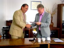 O godzinie 12:00 w Sali konferencyjnej zgromadzili się: prof. Bogdan Boguszewski – dyrektor artystyczny festiwalu, prezydent Świnoujścia, Jolanta Boguszewska - kierownik produkcji festiwalu, Maja Piórska oraz media. Spotkanie rozpoczęła pani Koprowicz, witając obecnych oraz prezydenta, któremu przekazała głos. Prezydent opisywał wspieranie festiwalu, mówił o powiększającym się jego zakresie – w tym roku współorganizatorem jest Szczecin. Wspominał również o idealnym wpisaniu się Sacrum non Profanum w muzyczne wydarzenia Świnoujścia (mowa była o wieczorkach organowych). Po Januszu Żmurkiewiczu przemówił prof. Boguszewski, wprowadzając gości w historię festiwalu. Za pomocą zdjęć i rzutnika można było zobaczyć wyrestaurowany kościół w Trzęsaczu, program wydarzenia i portrety wykonawców. Profesor zapowiedział, że w przyszłych latach festiwal będzie poświęcony Henrykowi Góreckiemu, Andrzejowi Jasińskiemu i Wojciechowi Kilarowi. Pani rzecznik wyraziła nadzieję na większe wsparcie finansowe prezydenta Świnoujścia na finał festiwalu. A to w związku z pomysłem, ażeby w przyszłych latach, w związku z Kilarem, koncerty uświetnili aktorzy grający w produkcjach filmowych, do których muzykę tworzył wielki kompozytor. Na koniec pan profesor Boguszewski uroczyście wręczył prezydentowi miasta zaproszenie na festiwal.