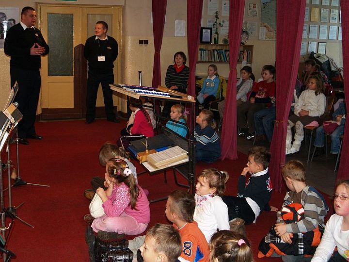Zajęcia rozpoczęły się od krótkiego koncertu. Następnie kapelmistrz st.chor.szt. Piotr Romański opowiedział dzieciom o Orkiestrze Garnizonowej, przybliżając jej historię i dorobek artystyczny. Drugą część lekcji poprowadził st.mat Piotr Skoczylas. Dzieci nie tylko dowiedziały się jakimi instrumentami dysponuje orkiestra, lecz także poznały ich budowę i historię powstania. Ponadto każdy muzyk indywidualnie prezentował możliwości swojego instrumentu. Następnie dzieci dowiedziały się o podziale orkiestry na sekcje instrumentalne, których współdziałanie daje efekt końcowy w postaci koncertu.