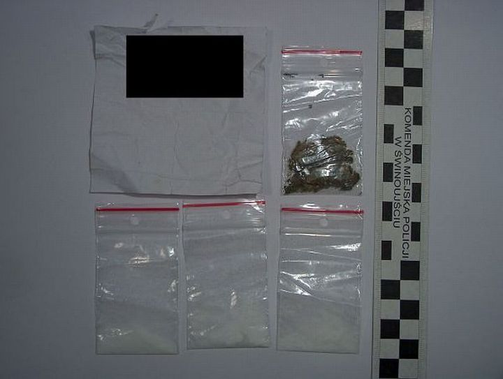 Około godziny 21.50, policjanci zatrzymali do kontroli 17-letniego mieszkańca miasta, który jechał rowerem ulicą Steyera. Podczas sprawdzania w systemie numerów fabrycznych roweru, pod bagażnikiem znaleźli zwinięta białą kartkę papieru, a w niej 4 woreczki z zapięciem strunowym. W trzech znajdowała się amfetamina (1,3 grama), a w czwartym prawie 0,4 grama marihuany.