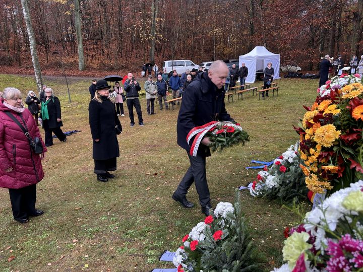 Okolicznościowe wystąpienie wygłosił Michael Sack, starosta powiatu Vorpommern-Greifswald, podkreślając znaczenie wspólnej, polsko-niemieckiej odpowiedzialności za pielęgnowanie pamięci.