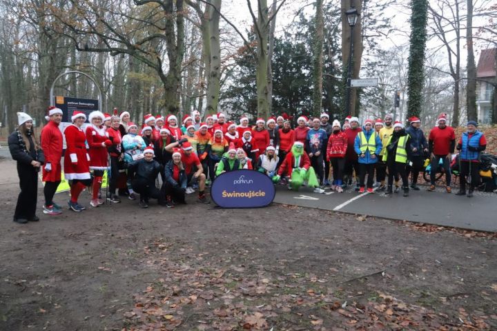 W Świnoujściu oficjalnie rozpoczął się sezon na czerwień, czapki z pomponami i świąteczną magię - mimo że pogoda uparcie przypominała, że w kalendarzu wciąż króluje jesień. Na trasie błyszczały mokre liście, powietrze było wilgotne i rześkie, ale właśnie dlatego czerwone akcenty wybijały się jeszcze bardziej. Już z daleka było widać wesołą, mikołajkową falę: czerwone koszulki, sukienki, skarpety w renifery, a czapki Świętego Mikołaja podskakiwały w rytm kroków rozgrzewających się biegaczy i chodziarzy.