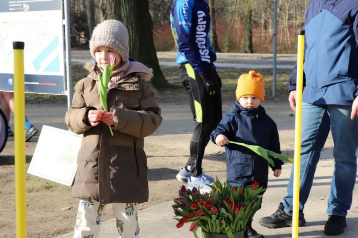 438. parkrun było wyjątkowym spotkaniem. Choć oficjalny Dzień Kobiet przypada w niedzielę to uż podczas sobotniego spotkania panowie zadbali o to, aby wszystkie panie poczuły się szczególnie. Na mecie czekały na nie tulipany i słodkości. Kwiaty wręczali najmłodsi uczestnicy – Kacper, Leon i Olaf wraz z tatą Patrykiem. Ten miły gest wywołał wiele uśmiechów na twarzach pań.