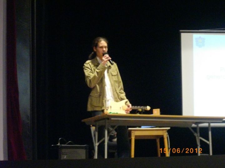 Paweł Cembala, uczeń klasy II świnoujskiego liceum, zaprezentował doświadczenie "Laserowa gitara". Doświadczenie polegało na generowaniu dźwięku przy pomocy strumienia światła laserowego. Paweł zbudował gitarę, na której grał i tworzył dźwięki wykorzystując ...promień światła. Uczniowie liceum trzeci raz z rzędu wygrywają nagrody w tym konkursie.