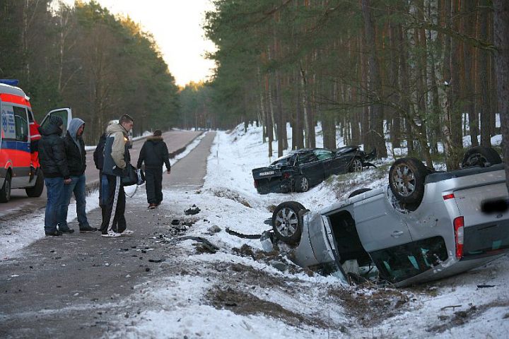Auta jechały w kierunku przeprawy promowej . Kierowca Audi 33-letni Michał T. włączył lewy kierunkowskaz, ale rozmyślił się i wrócił na swój pas. Jadący za nim Ford prowadzony przez 24-letniego Konrada M. nie zachował stosownej odległości i uderzył w tył Audi. Ford niemal natychmiast dachował w rowie po przejechaniu ścieżki rowerowej, a kierowca Audi próbował jeszcze opanować pojazd, ale ostatecznie uderzył dalej w drzewo. Oba samochody są poważnie rozbite i to cud, że nikt w tym wypadku nie zginął. Mógł to być także rowerzysta jadący tą popularną ścieżką rowerową. Pasażerka jednego z pojazdów narzekała na bóle w klatce piersiowej, a pasażer z drugiego auta na nogę. Oboje trafili do szpitala. Na miejscu interweniowały wszystkie służby.