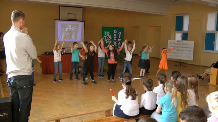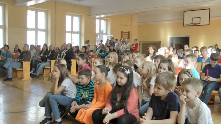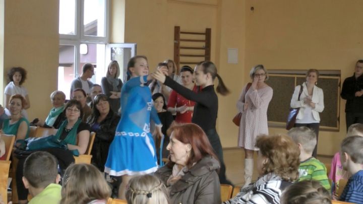 Impreza składała się z dwóch części. W pierwszej wraz z pokazem multimedialnym gorąco oklaskiwano uczniów w krótkich pokazach tańca towarzyskiego, występy uczniów grających na instrumentach i śpiewających. I nie były to bynajmniej popisy wybranych solistów, ale występowały całe klasy. Jest to wynik ciekawej oferty edukacyjnej, realizowanej systematycznie od kilku lat, w której np. uczniowie w ramach w-f mają zajęcia na basenie, gimnastykę ogólnorozwojową z elementami korekcyjnej. W ramach lekcji prowadzone jest dla wszystkich umuzykalnienie oraz nauka tańca. Szczególny nacisk szkoła kładzie na naukę języków obcych od zerówki, stąd też ścisła współpraca ze szkołą w Heringsdorfie, której nauczyciele (na wymianę) prowadzą naukę języka polskiego w szkole niemieckiej i odwrotnie. Szkoły prowadzą także wspólne imprezy o różnej tematyce. Od zerówki prowadzona jest także informatyka. Mała ilość uczniów tworzy świetne warunki do nauki. Pierwszą część spotkania prowadziła Jolanta Ankiewicz.